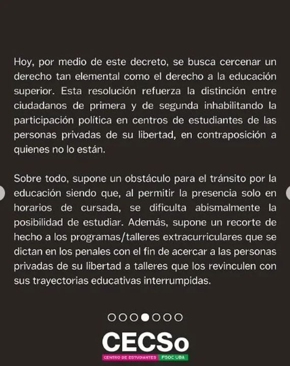 En su pronunciamiento, la conducción del CECSO expresó su firme rechazo y afirmó que “no van a dejar pasar este avasallamiento”, anunciando que están trabajando en articulación con los estudiantes y trabajadores de la educación en contexto de encierro para seguir de cerca la situación.