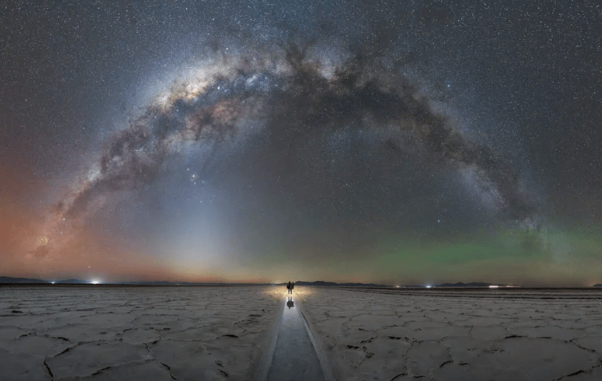 La imagen de Heis, fotógrafa oriunda de Mar del Plata, fue tomada durante la noche en las Salinas Grandes, provincia de Jujuy, y muestra una panorámica espectacular del firmamento y la Vía Láctea reflejándose en el paisaje salino.