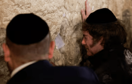 El presidente Javier Milei arribó a Israel y, en su primera actividad, se trasladó de Tel Aviv a Jerusalén para rezar en el histórico Muro de los Lamentos.