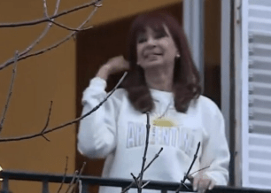 Cristina Fernández de Kirchner volvió a mostrarse en público este sábado al salir al balcón de su departamento en San José 1111, donde cumple prisión domiciliaria, para saludar a simpatizantes que se concentraron tras el banderazo por el Día de la Independencia.